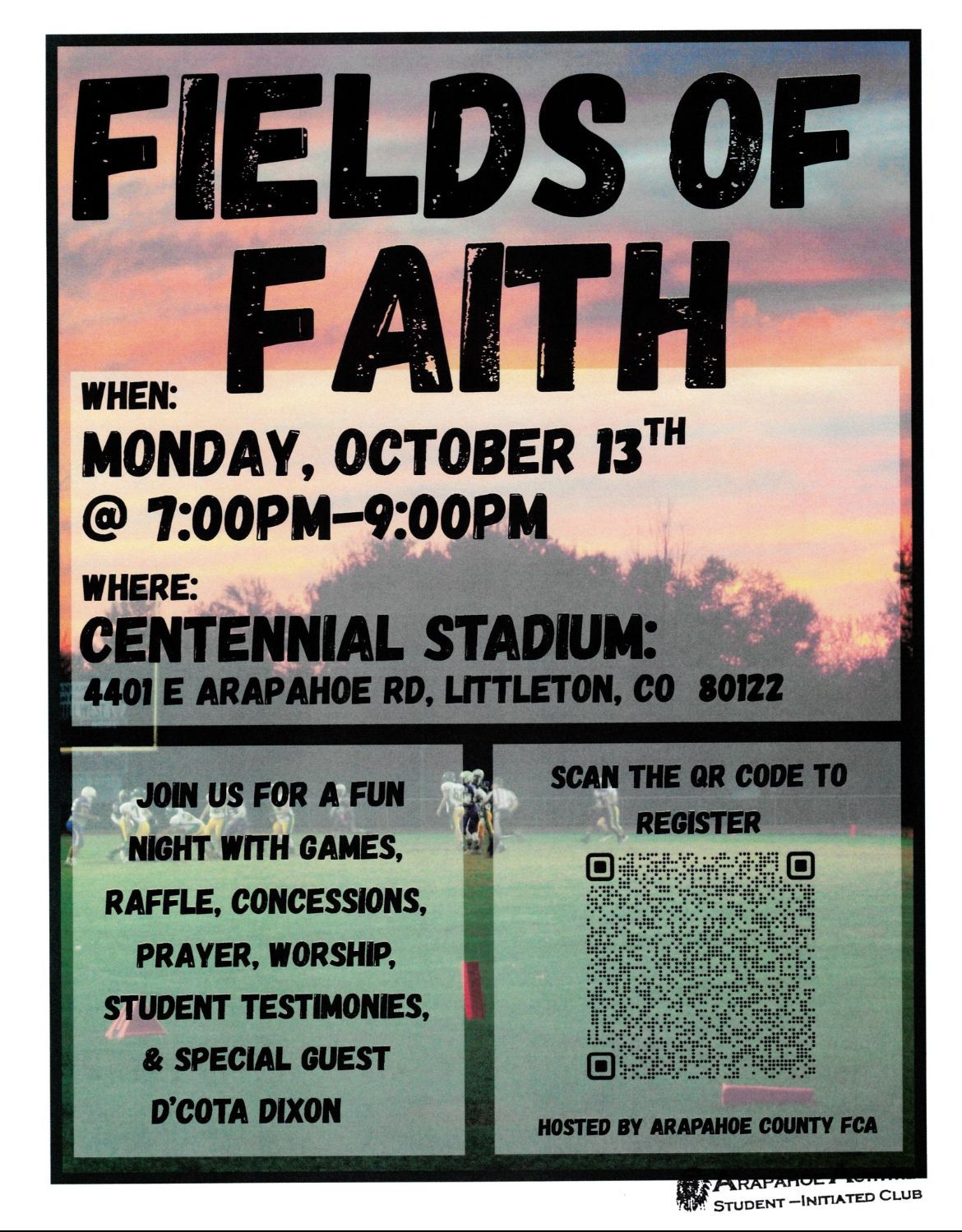 Fields of Faith is an event where students challenge their peers to read the Bible and follow Jesus Christ